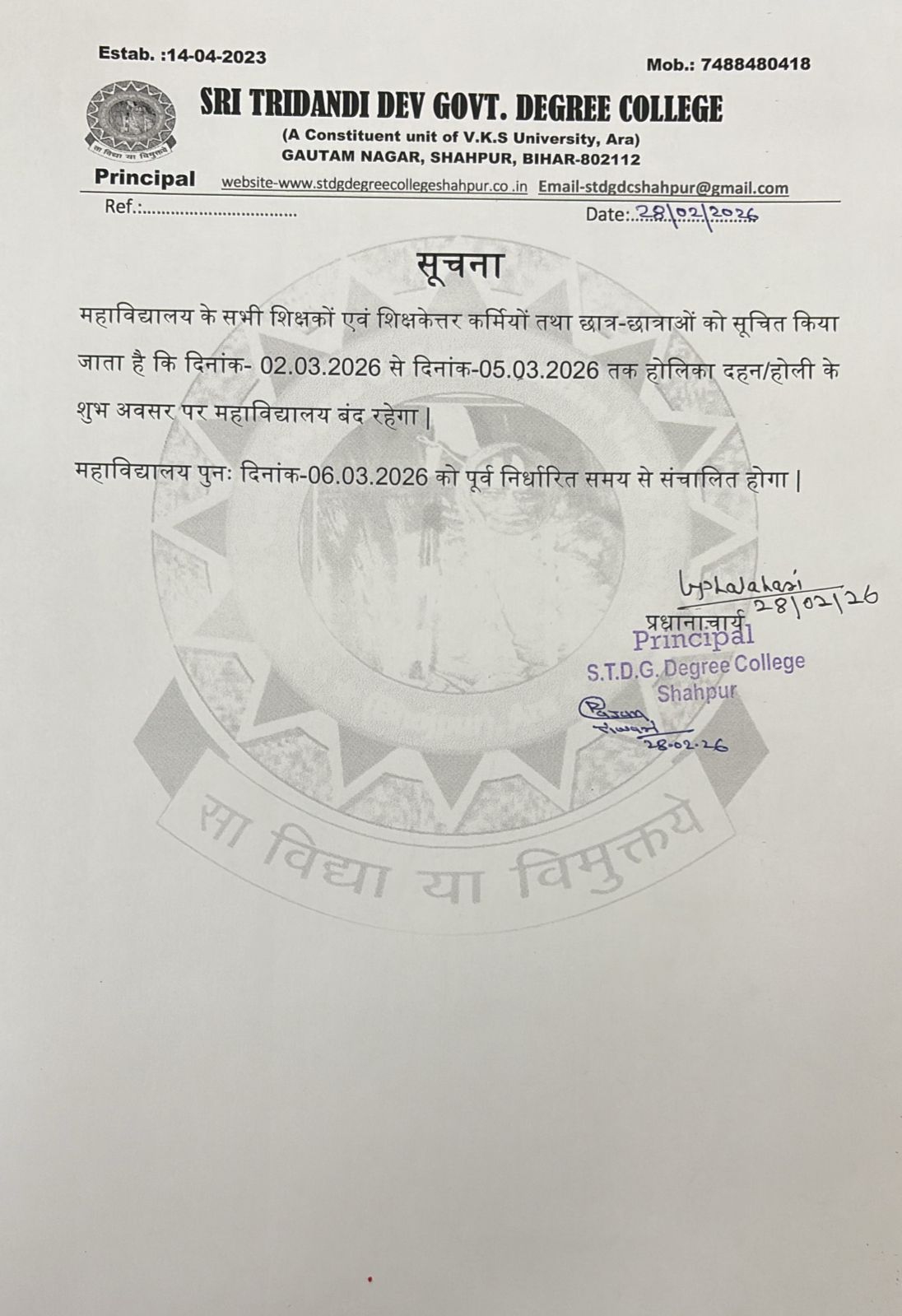 © 2024 Sri Tridandi Deo Govt. Degree College, Shahpur. All rights reserved. Maintained by Bharat Web Studio