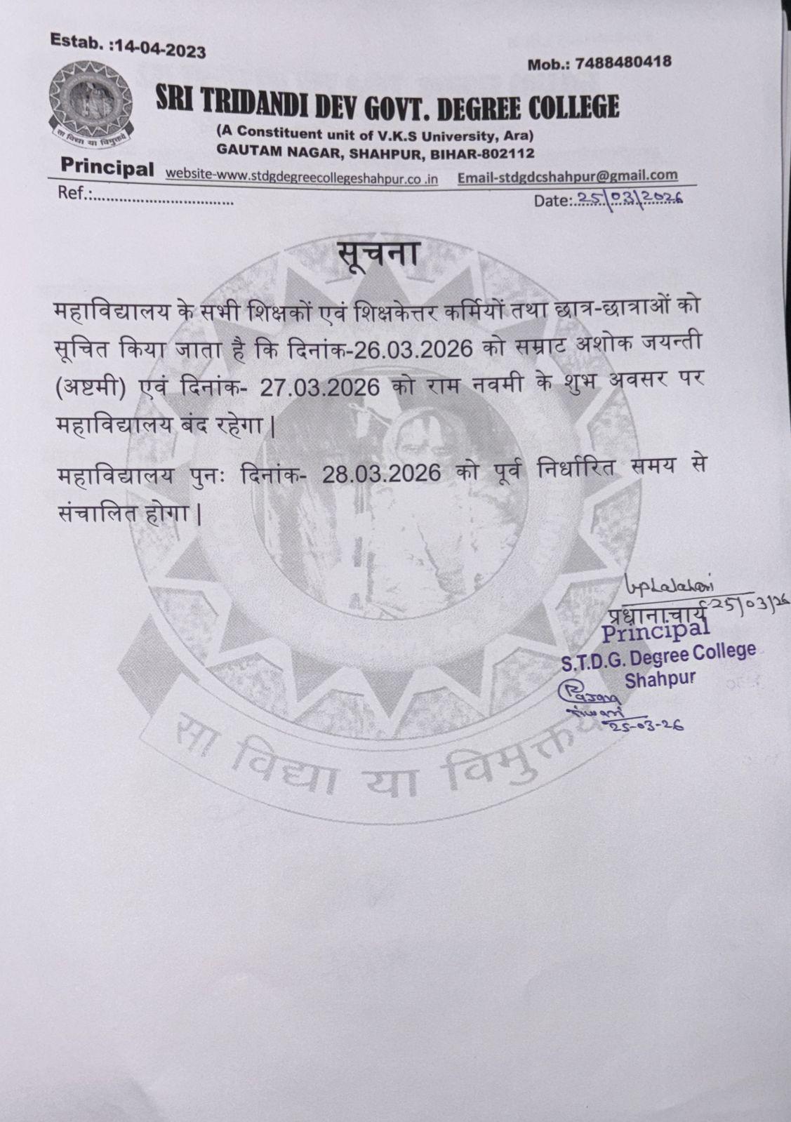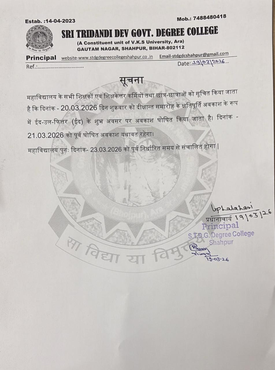 © 2024 Sri Tridandi Deo Govt. Degree College, Shahpur. All rights reserved. Maintained by Bharat Web Studio